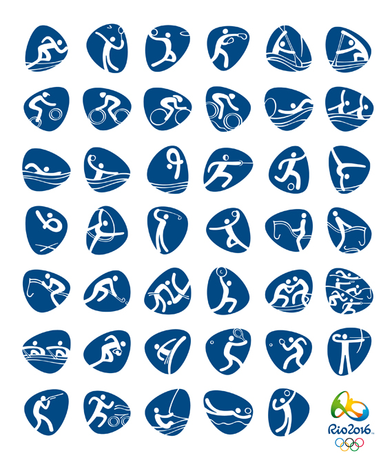 The 64 pictograms – 41 Olympic and 23 Paralympic — were created by the Rio 2016 in-house team. They are derived from the Games typeface, which was designed by Dalton Maag and which, in turn, was influenced by the Rio 2016 logo and by aspects of the city itself, such as the famous staue of Christ the Redeemer.