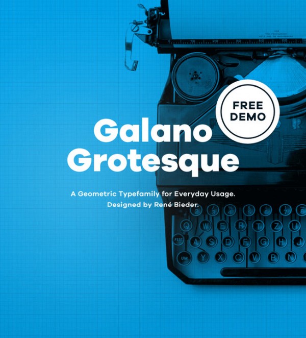 German font designer Rene Bieder has created the Galano Grotesque type family in 2014. It’s a geometric sans serif font intended for everyday usage. The typeface is in the tradition of fonts such as Futura, Avant Garde, Avenir, etc. Galano Grotesque is based on a modern and well balanced design. The result is a legible typeface that can be used for both striking headlines as well as long and small text. The whole family comprises 10 weights (ranging from Thin to Black) plus matching italics for every single weight.