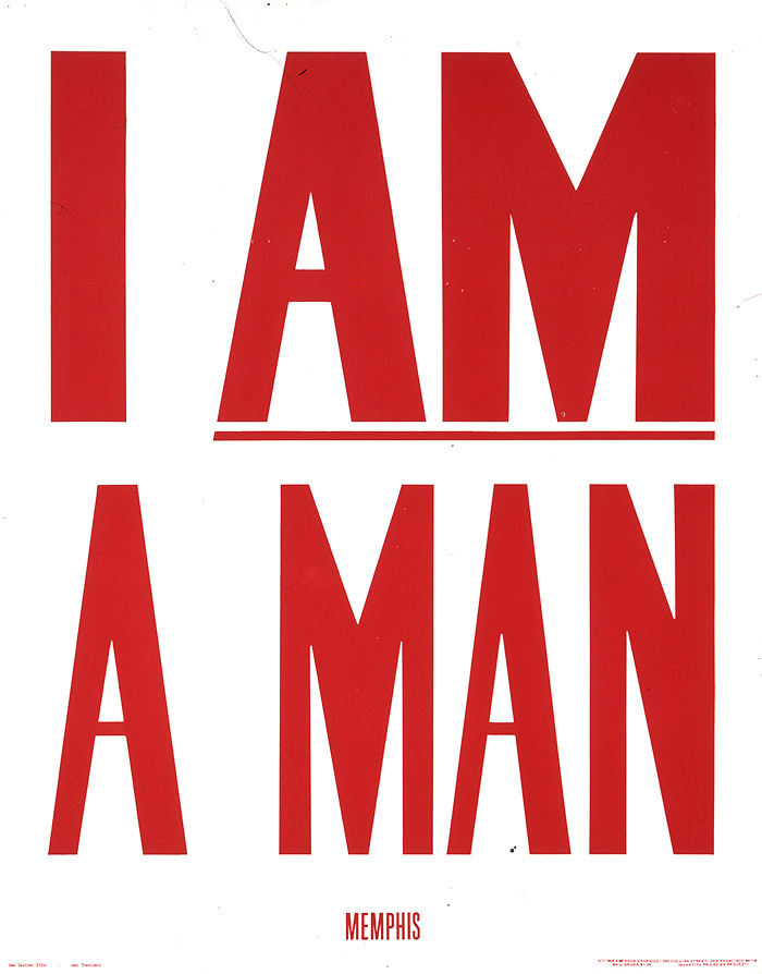 I Am a Man! is a declaration of civil rights, often used as a personal statement and as a declaration of independence against oppression. “I Am a Man!” has been used as a title for books, plays and in film to assert the rights of all people to be treated with dignity. — via wikipedia