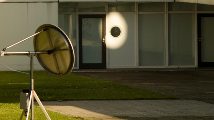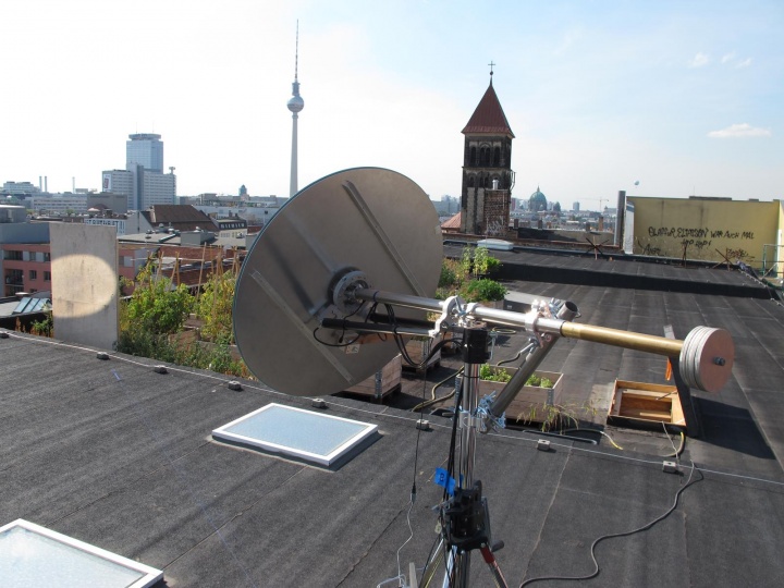 World illuminator is an artwork that redirects sunlight onto a fixed point by adjusting a mirror in concert with the ‘movement’ of the sun across the sky. In development at the artist’s studio for a number of years, the apparatus belongs to a family of optical devices called sun trackers and known formally as heliostats – a word deriving from Greek roots that mean stationary sun. Eliasson emphasizes the sun tracker’s ability to make explicit a unique position on earth as it revolves the sun. The normal ‘movement’ of the sun through a room, after all, is no movement of the sun, but rather the optical result of the movement of the room on the rotating earth. The sun tracker thus links artwork and visitor to the earth’s surface, to the weather environments that determine the visibility of the sun, and to the broader planetary cosmos beyond. In his words: ‘To track the sun is to track yourself, because the sun tracker locates the centre of your orbital ellipse, giving your position right now and rendering visible your path. The reflexive potential lies in understanding that we are in a way the mirrors, circulating, tracking, spinning in our Keplerian ellipses. You and I are not the centre of the universe, but in fact spinning in altruistic space.’