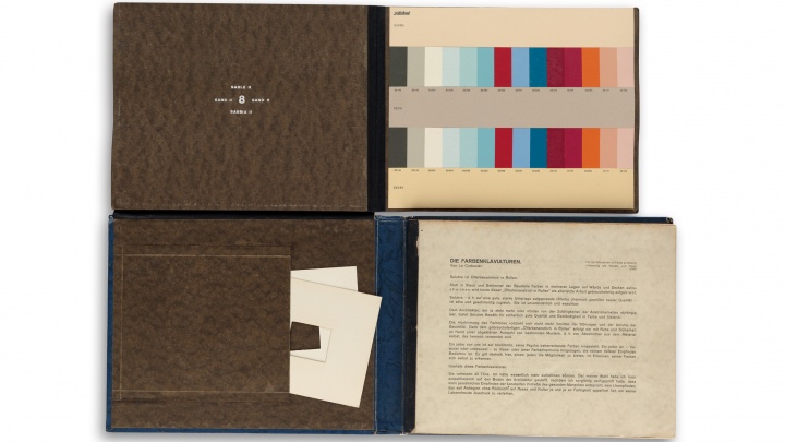 The book – which was created for Swiss wallpaper manufacturer Salubra – features pop-up and pull-out sections, based on the architect’s approach to colour. A rare first edition of Le Corbusier’s 1931 interactive design guide Polychromie Architecturale: Die Farbenklaviaturen. The guide includes pockets with wallpaper samples and 12 pages dedicated to colour scales – complete with a paper slider.