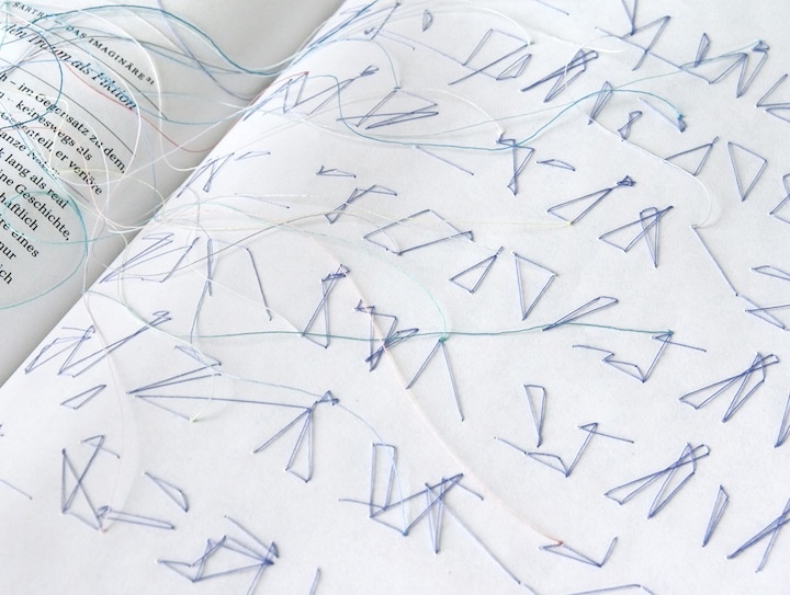 “The book “Traumgedanken” (“Thoughts on dreams”) contains a collection of literary, philosophical, psychological and scientifical texts which provide an insight into different dream theories. To ease the access to the elusive topic, the book is designed as a model of a dream about dreaming. Analogue to a dream, where pieces of reality are assembled to build a story, it brings different text excerpts together. They are connected by threads which tie in with certain key words. The threads visualise the confusion and fragileness of dreams.”