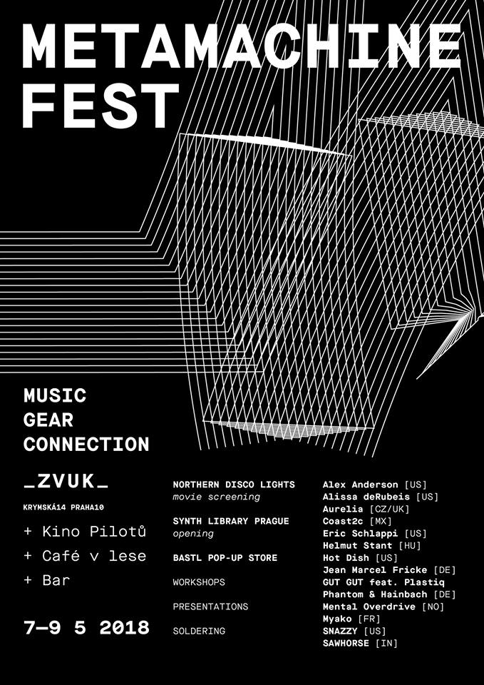 Metamachine Fest is the international community of synth enthusiasts and musicians as well as music inventors meet up. Organized by ZVUK and consist of lectures, workshops and concerts, part of which is also Synth Library Prague opening!