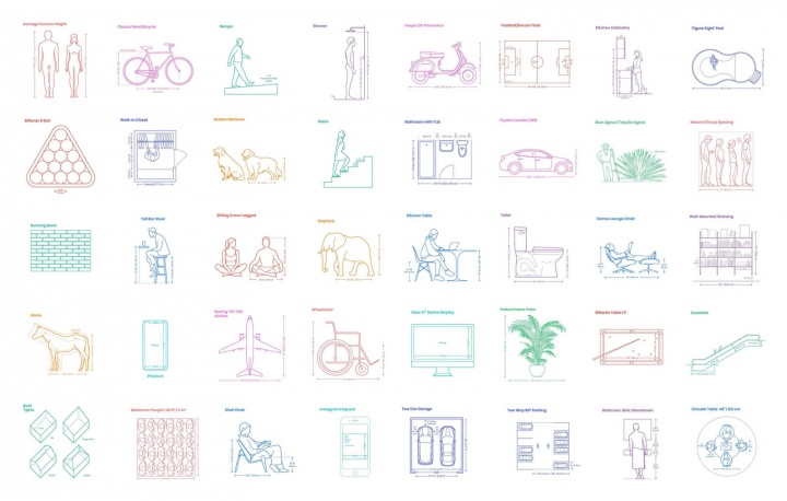 Dimensions.Guide is a comprehensive reference database of dimensioned drawings documenting the standard measurements and sizes of the everyday objects and spaces that make up our world. Created as a universal resource to better communicate the basic properties, systems, and logics of our built environment, Dimensions.Guide is a free platform for increasing public and professional knowledge of life and design.