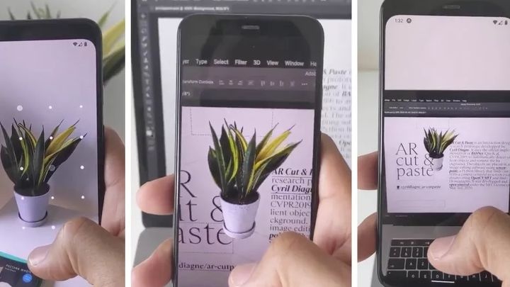 When users take a photograph with AR Cut & Paste, the software finds distinct objects and automatically removes their backgrounds. In a video below, Diagne shows how a plant is captured on a mobile device before being snipped from the surrounding image. Once he hovers over the computer screen, the cut-out plant is placed directly into Photoshop.